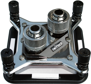 - Retention Mechanism: The Swiftech's tool free retention system uses springs and limited travel thumb-screws for high quality and repeatable mounts. The waterblock hold-down plate features elongated holes providing compatibility with all Intel® Core™ desktop processors. Motherboard back-plates provide server-class rigidity to the assembly.